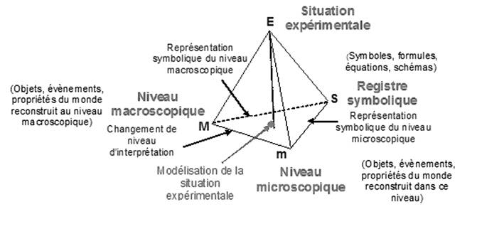 Ainsi, modéliser est un exercice qui permet de passer du champ des objets perceptibles et empirique au monde des théories et modèles (concepts, lois, etc). La mise en relation du registre symbolique avec celui des objets pose beaucoup de difficultés pour les élèves car il nécessite la mobilisation des conventions ainsi que du langage propre à la chimie.